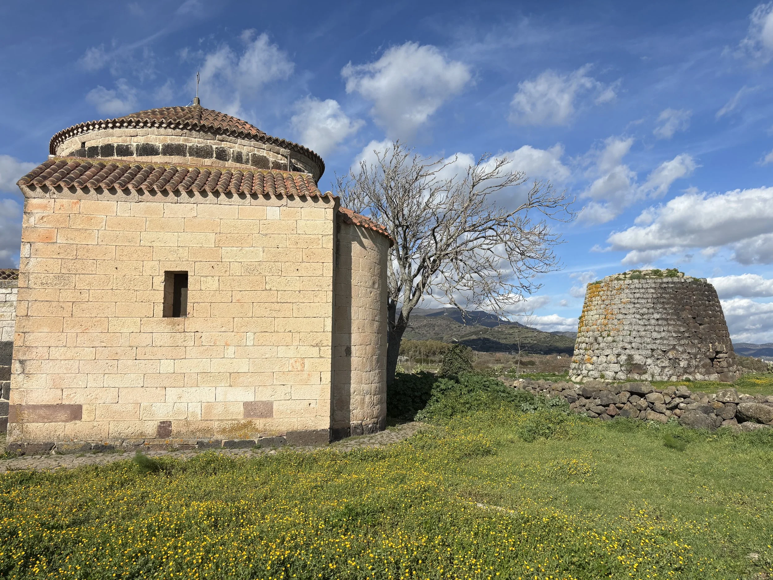 Featured in photo: Santa Sabina Church and nuraghe, perfectly exemplifying the “crocevia” in space and time in such a magical place, blending the Nuragic civilization and the later Romanesque art of the Christians.